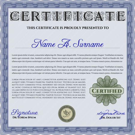 Sample Certificate. Artistry design. Vector pattern that is used in money and certificate. With quality background. Blue color.