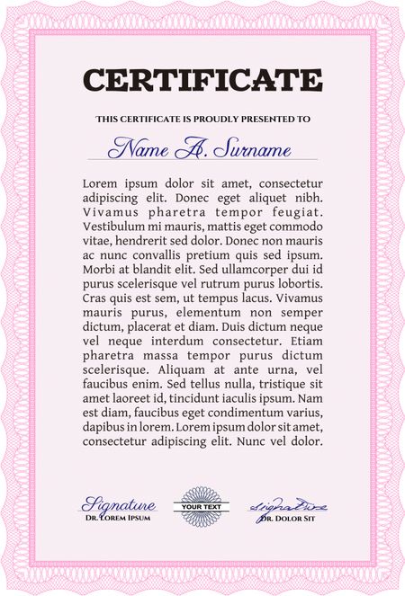Sample Certificate. Complex design. With complex linear background. Money style.