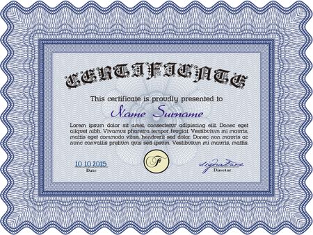 Sample Certificate. Complex design. With complex linear background. Money style.