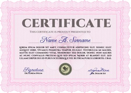 Sample Certificate. Cordial design. Border, frame.With guilloche pattern and background.