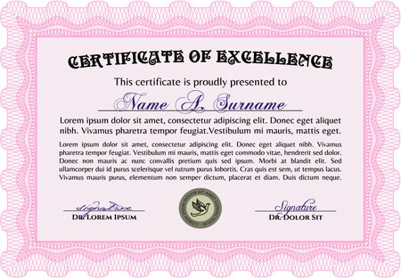 Sample certificate or diploma. Beauty design. Border, frame.With guilloche pattern and background.