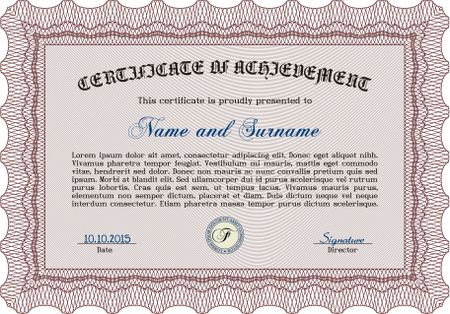 Sample certificate or diploma. Border, frame.Cordial design. With guilloche pattern and background.