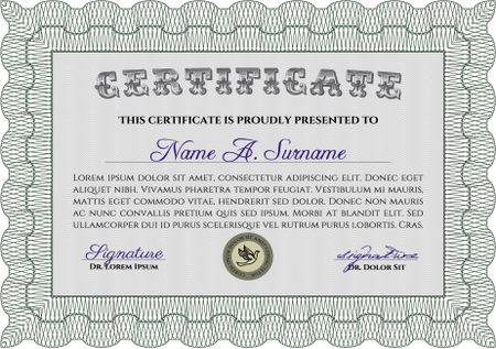 Sample certificate or diploma. Border, frame.Retro design. With complex background.