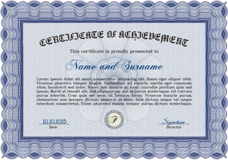 Sample certificate or diploma. Border, frame.Retro design. With complex background.