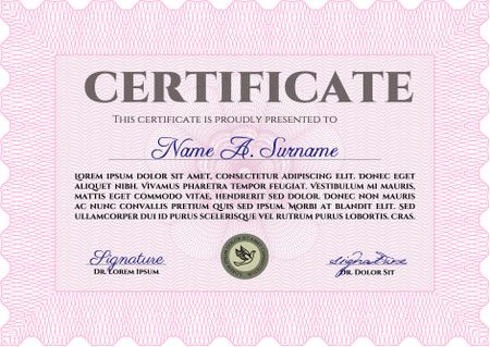 Sample certificate or diploma. Border, frame.Retro design. Complex background.