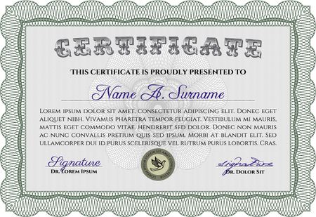 Sample certificate or diploma. Complex background. Vector certificate template.Cordial design.