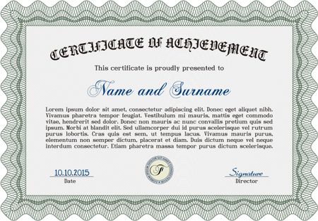 Sample certificate or diploma. Detailed.Complex design. With guilloche pattern and background.
