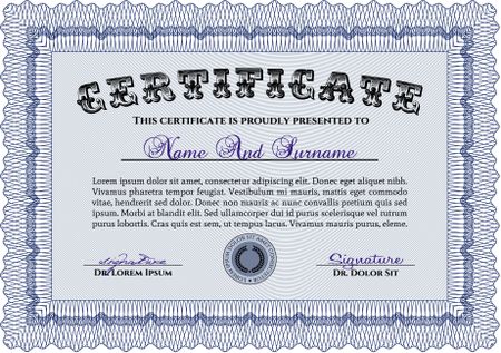 Sample certificate or diploma. Detailed.Nice design. With background.
