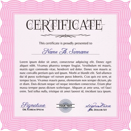Sample certificate or diploma. Frame certificate template Vector.Complex background. Lovely design.