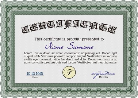 Sample certificate or diploma. With great quality guilloche pattern. Artistry design. Vector certificate template.