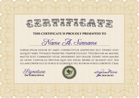 Sample certificate or diploma. Money style.Good design. With guilloche pattern and background.