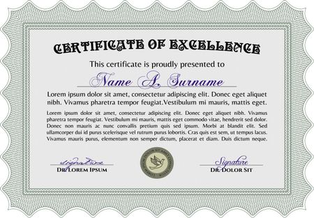 Sample certificate or diploma. Printer friendly. Money style.Good design.