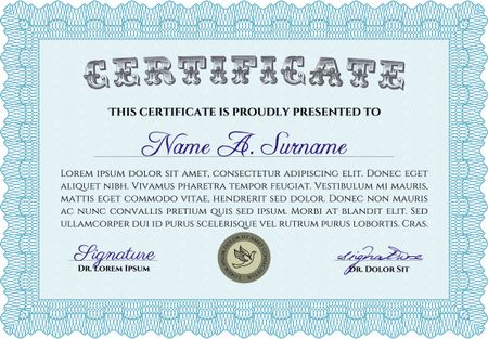 Sample certificate or diploma. Printer friendly. Money style.Good design.