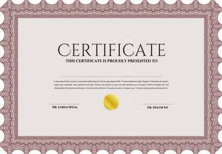 Sample certificate or diploma. Retro design. Vector certificate template. With complex linear background. Red color.