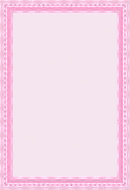 Sample certificate or diploma. Retro design. Vector certificate template. With complex linear background. Pink color.