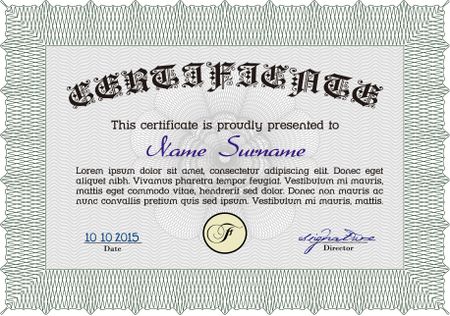 Sample certificate or diploma. Sophisticated design. With quality background. Diploma of completion.