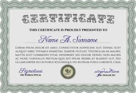 Sample certificate or diploma. Vector certificate template. Elegant design. With complex linear background. Green color.