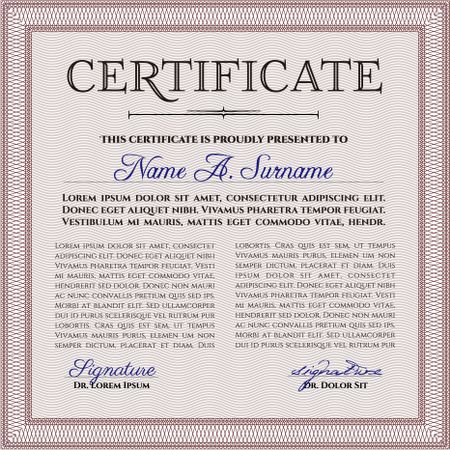 Sample certificate or diploma. Vector certificate template.Lovely design. With background.