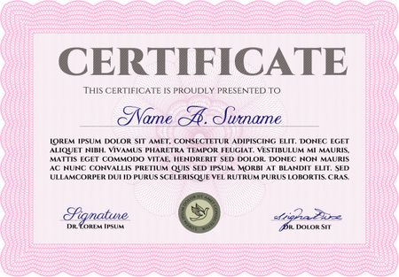 Sample certificate or diploma. Vector illustration.Elegant design. Easy to print.