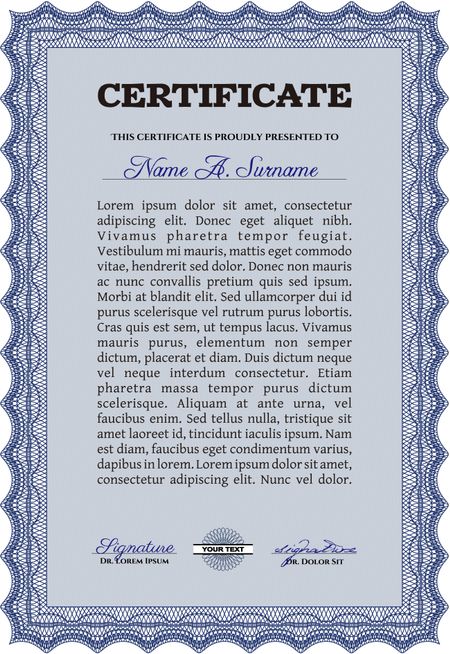 Sample certificate or diploma. Vector illustration.With complex linear background. Cordial design.