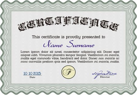 Sample Certificate. Frame certificate template Vector. With linear background. Modern design. Green color.
