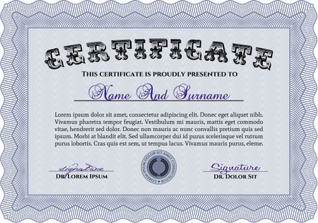 Sample Certificate. Frame certificate template Vector. With linear background. Modern design. Blue color.