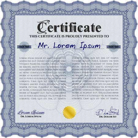 Sample Certificate. With linear background. Modern design. Frame certificate template Vector. Blue color.