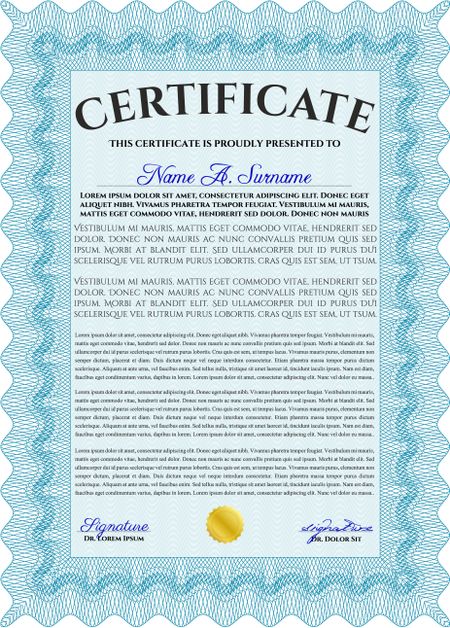 Sample Certificate. Printer friendly. Excellent design. Frame certificate template Vector.