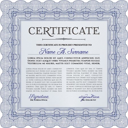 Sample Certificate. Printer friendly. Retro design. Border, frame.