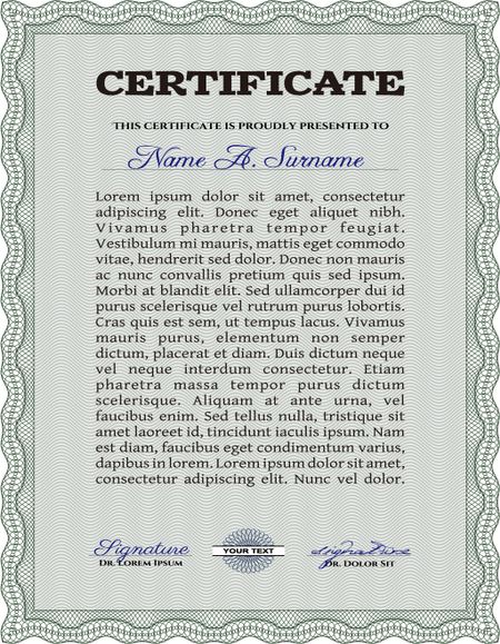 Sample Certificate. Printer friendly. Retro design. Border, frame.