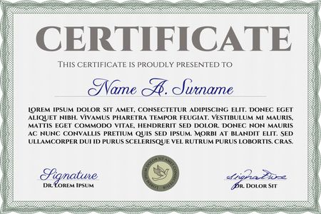 Sample Certificate. Printer friendly. Retro design. Border, frame.