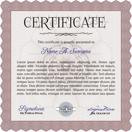Sample Certificate. Printer friendly. Retro design. Border, frame.
