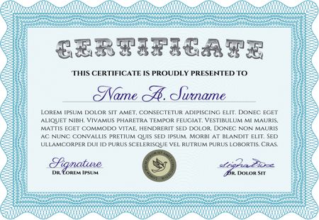 Sample Certificate. Printer friendly. Retro design. Border, frame.