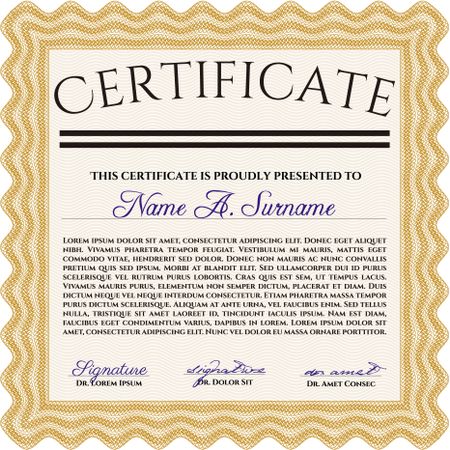 Sample Certificate. With quality background. Vector pattern that is used in money and certificate. Artistry design. Orange color.