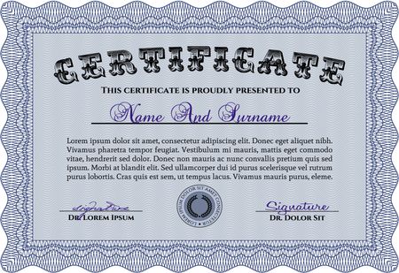 Sample Certificate. Superior design. Detailed.With complex linear background.