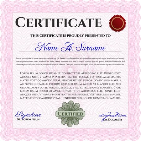Sample Certificate. Vector pattern that is used in money and certificate. With quality background. Artistry design. Pink color.