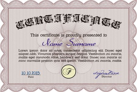Sample Diploma. With complex background. Border, frame.Elegant design.