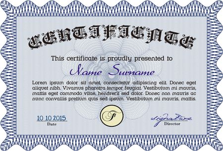 Sample Diploma. Complex background. Diploma of completion.Superior design.