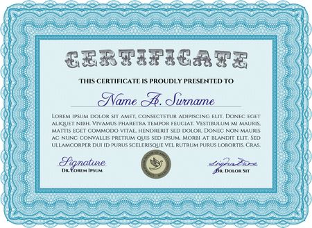 Sample Diploma. Cordial design. With background. Frame certificate template Vector.
