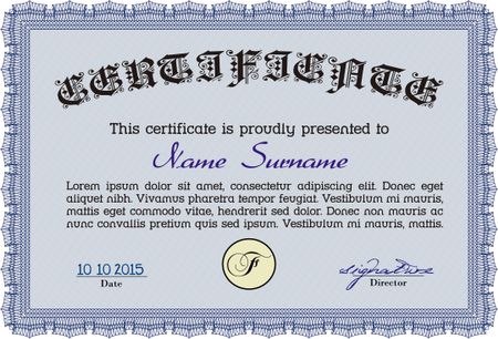 Sample Diploma. Cordial design. Border, frame.Printer friendly.