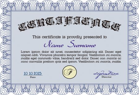 Sample Diploma. Frame certificate template Vector.Artistry design. Easy to print.