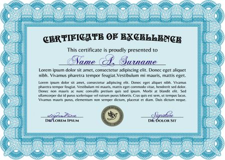 Sample Diploma. With guilloche pattern. Border, frame.Retro design.
