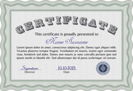 Sample Diploma. With guilloche pattern. Customizable, Easy to edit and change colors.Cordial design.