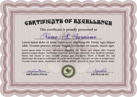 Sample Diploma. Modern design. Diploma of completion.Complex background.