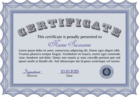 Sample Diploma. Money style.With complex background. Nice design.