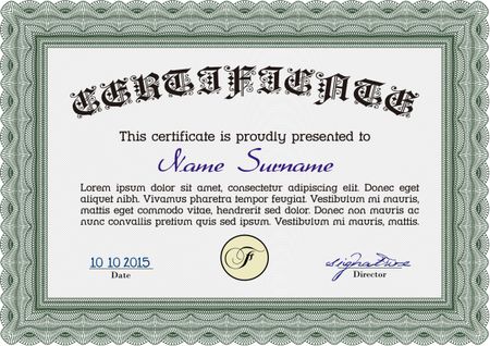 Sample Diploma. Printer friendly. Modern design. Border, frame.