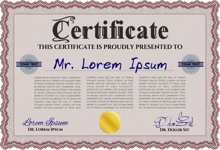 Sample Diploma. Retro design. With complex linear background. Money style.