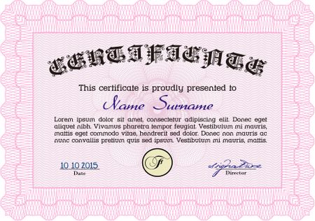 Sample Diploma. Vector certificate template.Excellent design. With great quality guilloche pattern.