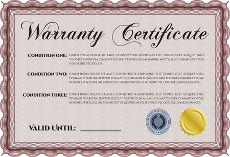 Sample Warranty. Border, frame. Beauty design. With linear background.