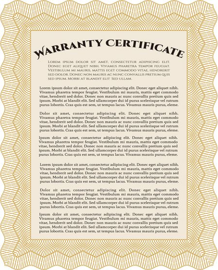 Sample Warranty certificate. Artistry design. Vector illustration. With complex linear background.